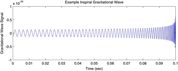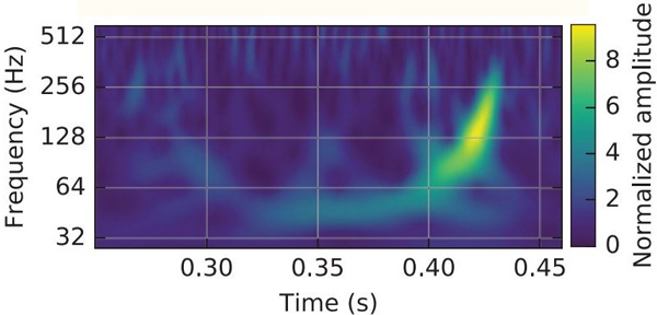 Рис. 3. Гравитационно-волновой всплеск от слияния двух черных дыр. Изображение с сайта ligo.org |